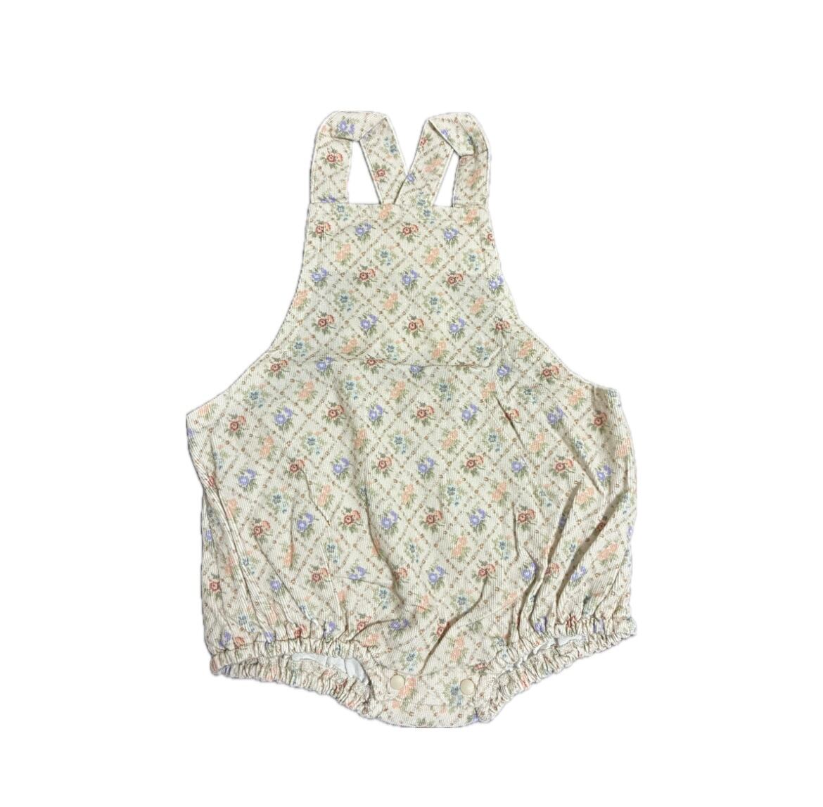 花柄のコーデュロイ素材が可愛いロンパース。
